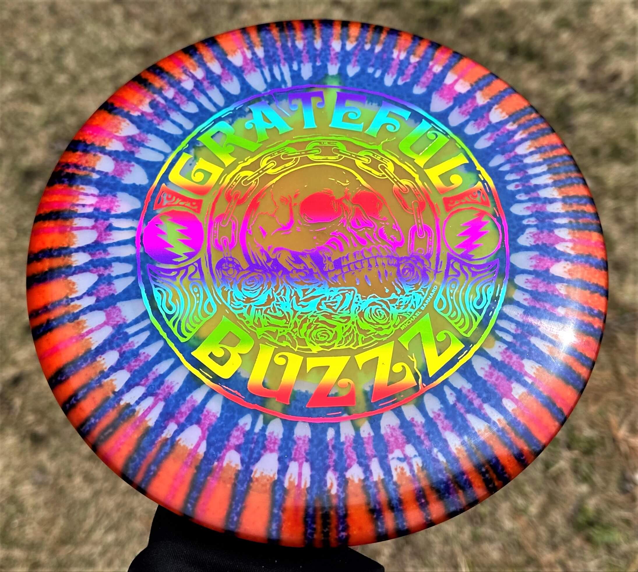 The Buzzz is the most popular disc on the market. It’s a dependable, straight-flying midrange with a consistent fade that holds any line you put it on. The Buzzz is a go-to for players of all skill levels. The Grateful Buzzz has always been an annual full foil run showing mind-blowingly intricate Michael Barnard art. This run has expanded to include a new special-edition Z Fly Dye run. This run features Discraft’s old-school Fly Dye with differentiating colors and tie-dye patterns like sunburst, spiral, bullseye, and Discraft’s signature flag dye. These were part of a run of 2900 Buzzzes.