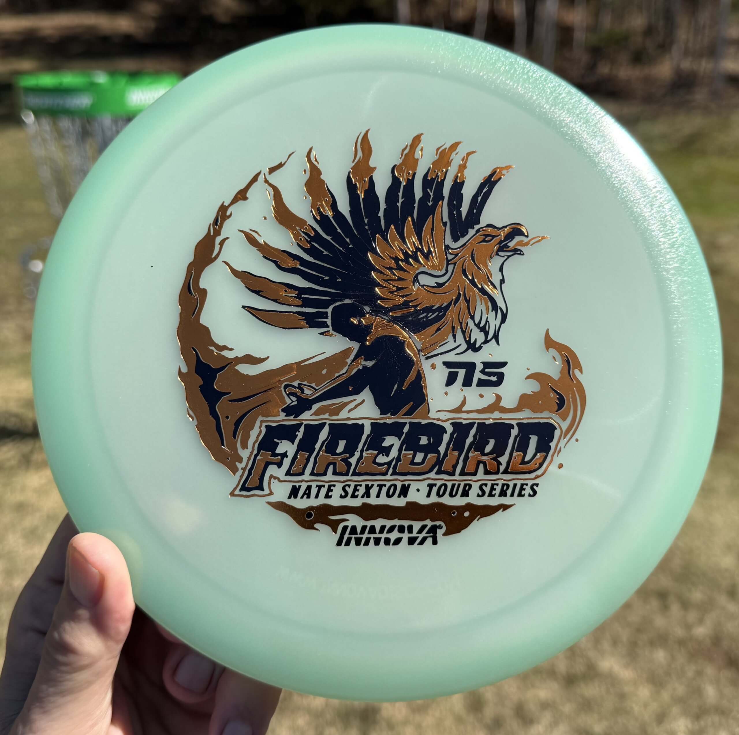 The 2026 Nate Sexton Proto Glow Champion Firebird is here, and we’re going back to Innova’s roots. Made in the spirit of the original Sexton Firebird, but with our long-lasting Proto Glow Champion plastic, this flat, grippy, mellower run of Sexybirds offer a reliable, but workable, predictable flight and feel that have made it the most popular Tour Series disc of all time.