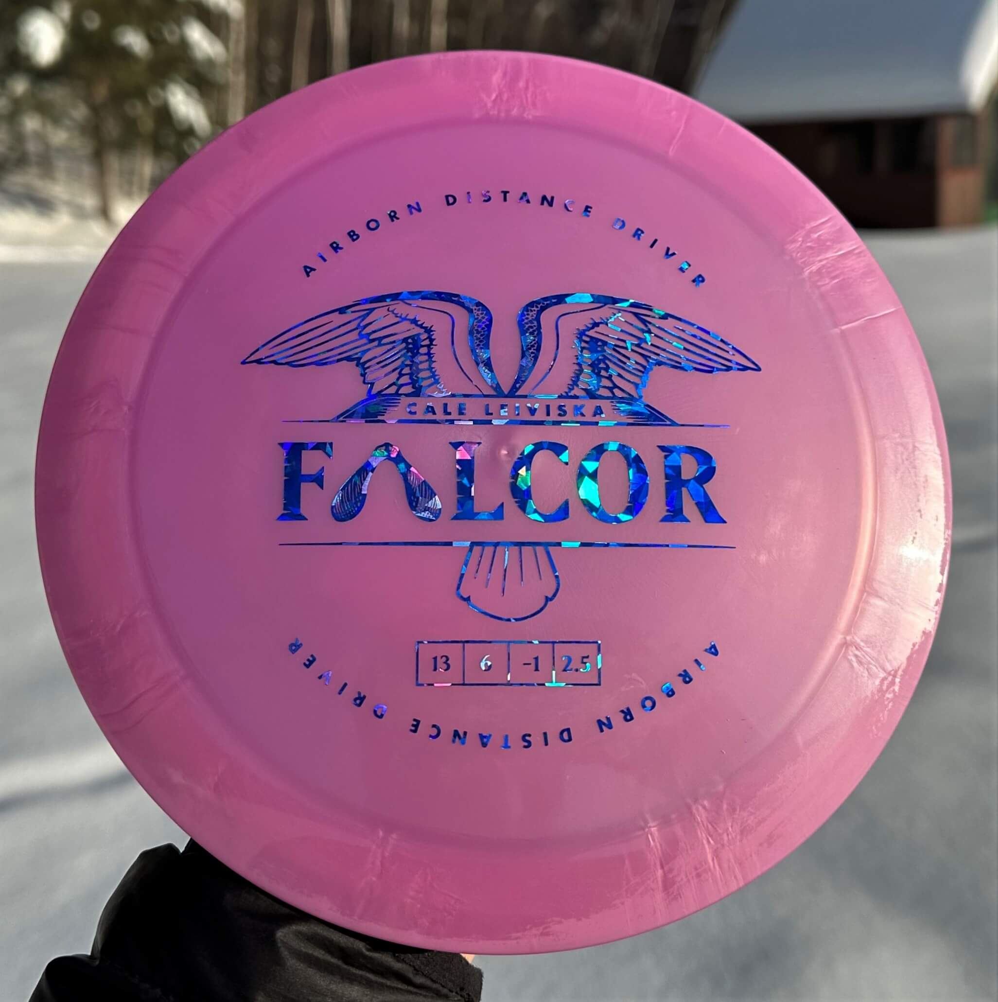 The Falcor is an over-stable driver that also packs a lot of glide (6). For those familiar with Prodigy discs, this is a modified, faster D2. Expect maximum distance at high arm speed. Thrown with anhyzer, it will give you a long S-shaped flight path before fading at the end.