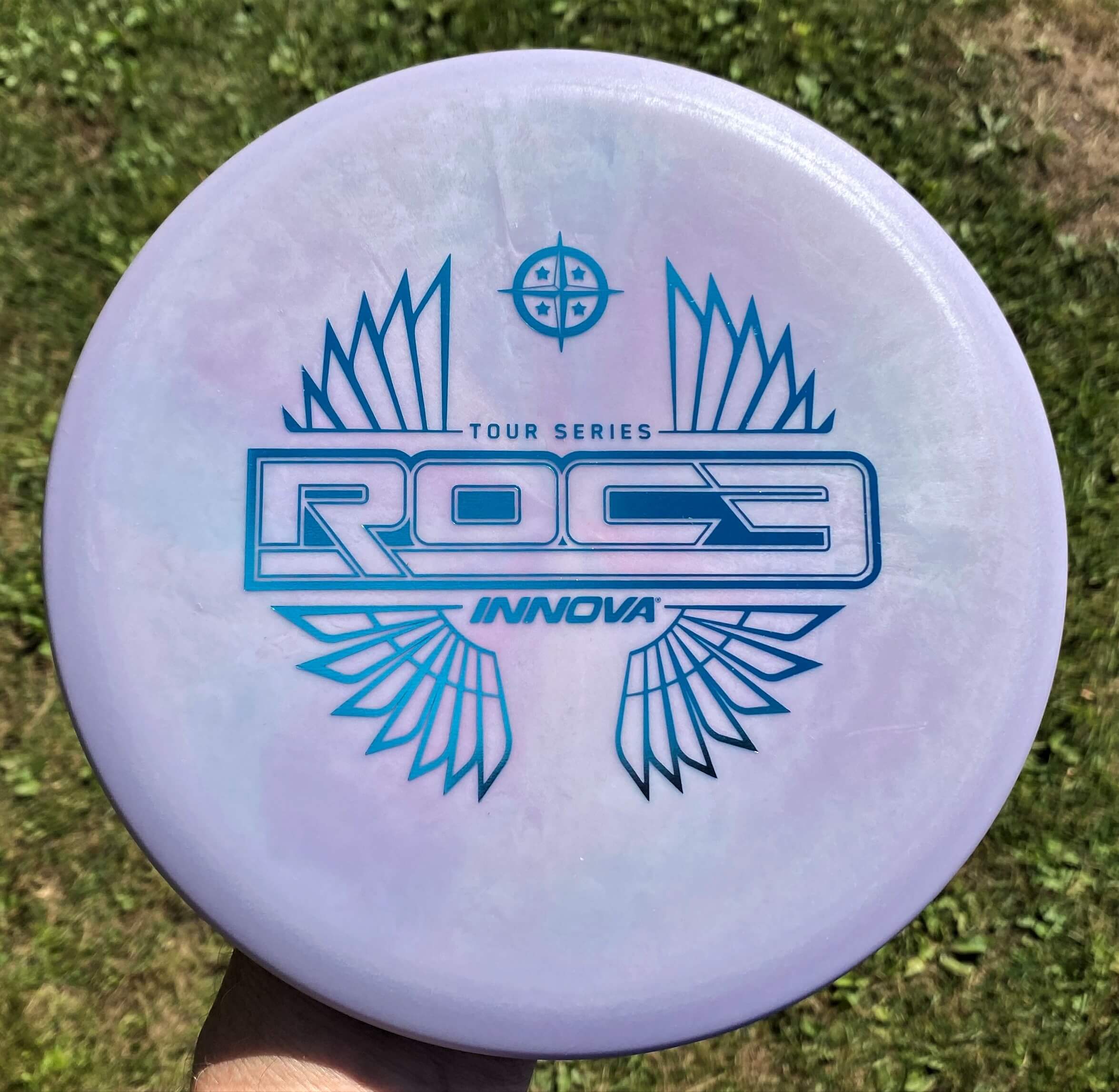 The Roc3 holds a line in a variety of wind conditions and has a predictable fade, making this an ideal ‘Go-To’ Mid-Range in almost any situation. Advanced players will love the versatility of this disc while newer players can rely on the consistent finish. The KC Glow material allows throwers to slowly season the disc into that “sweet spot” for the desired flight that will last many rounds. The blending of colors in these glow discs makes each disc unique. Proceeds of the sales of the Tour Series Roc3 benefit Innova players from both Team Star and Team Champion.