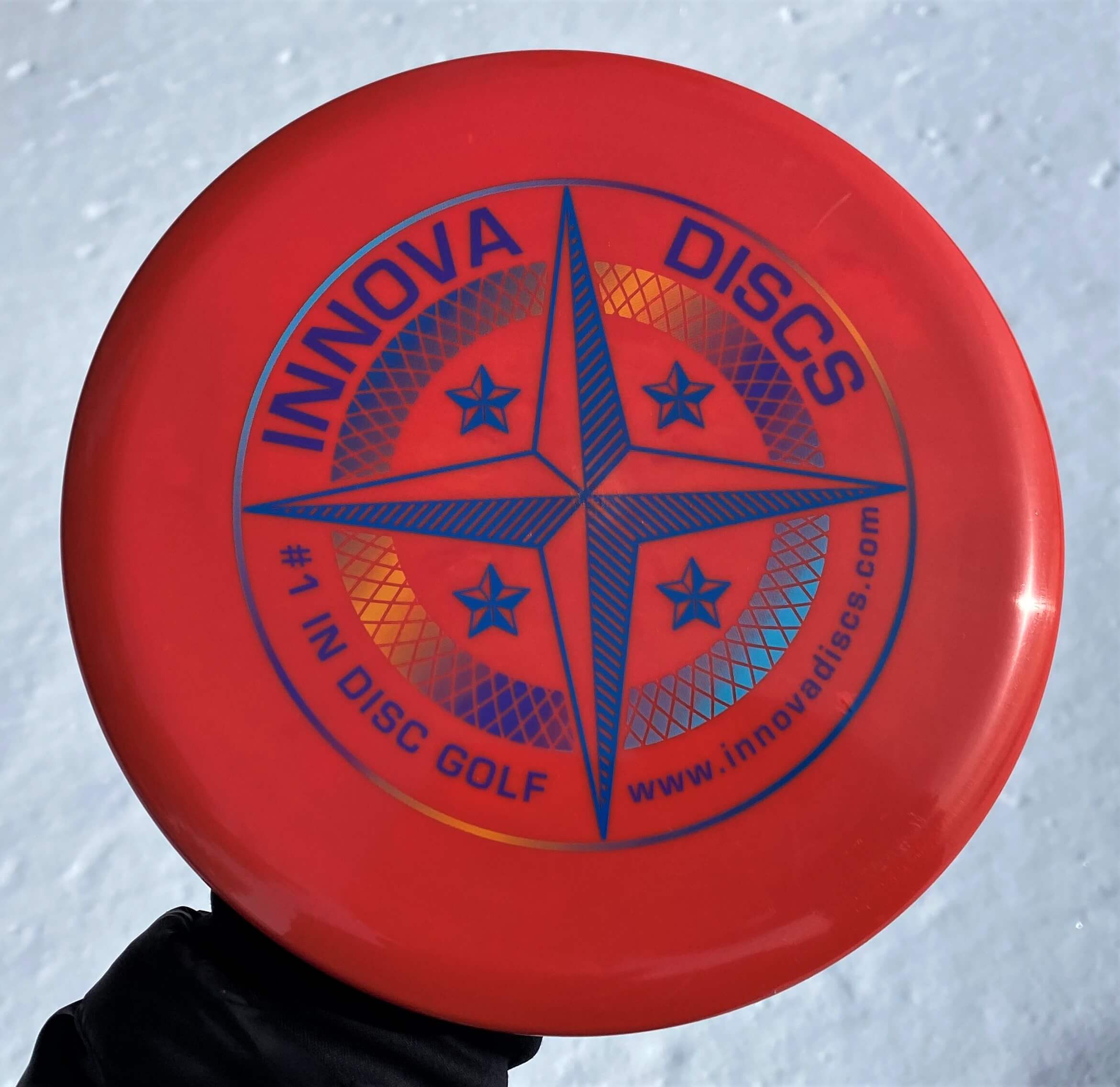 This new “halo” plastic from Innova Discs is the hottest thing on the market right now. According to Innova, this newer star plastic is more stable than the regular star plastic. This translates to LONGER DISTANCE. So, not only does it look pretty, it flies farther.