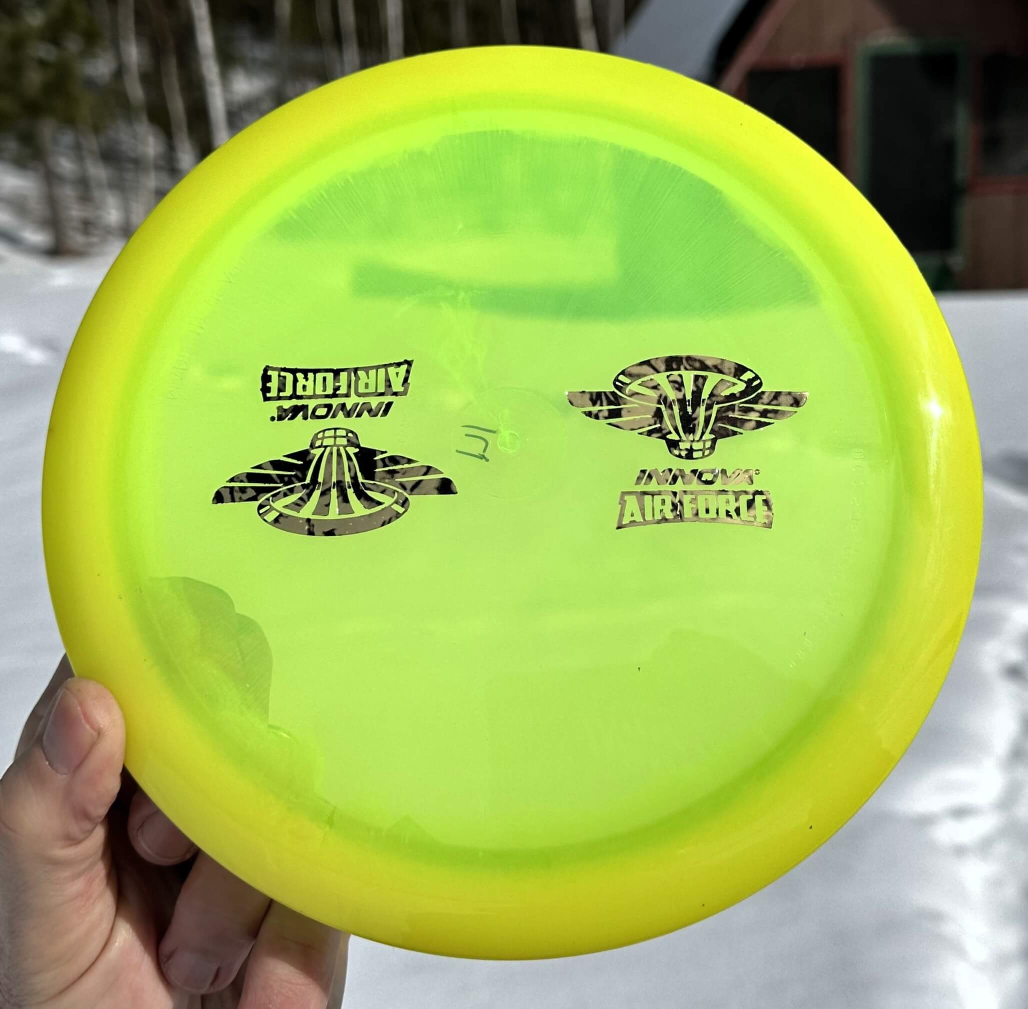 Halo Champion Gorgon with 2x mini Innova Air Force stamp. Proceeds from the sale of these Air Force stamped discs will be added to the purse for the 31st Northwoods Open at Sandy Point Disc Golf Ranch Driven by Innova Discs.