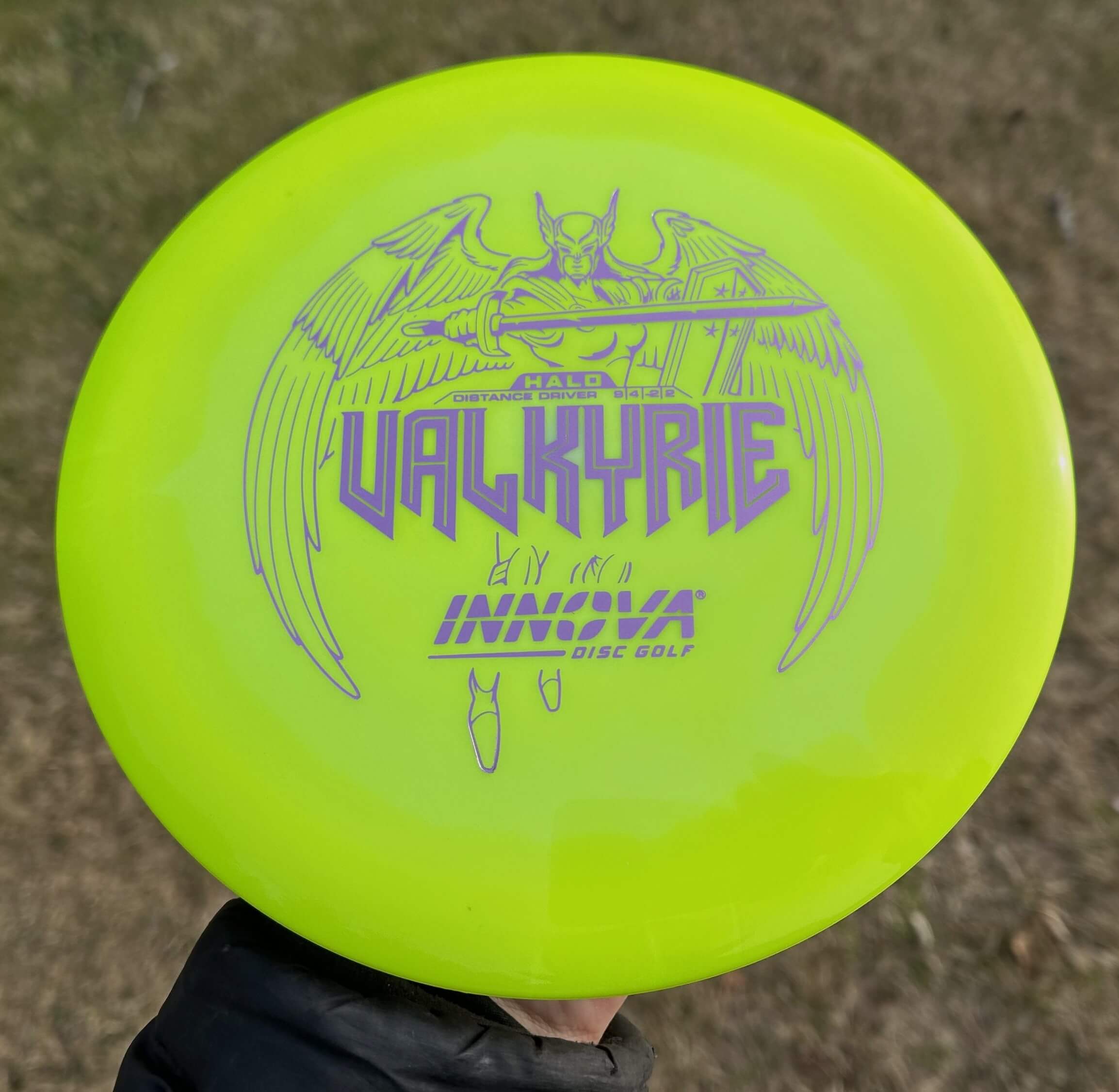 The Valkyrie is a turnover distance driver with great glide. A great choice for tailwind or downhill drives. In lighter weights the Valkyrie gives new players extra distance. Lighter weights also give players extreme range when thrown downwind, while maximum weights can give excellent upwind distance. The Valkyrie’s high speed turn and flight characteristics make it great choice for long range turnover shots and rollers.