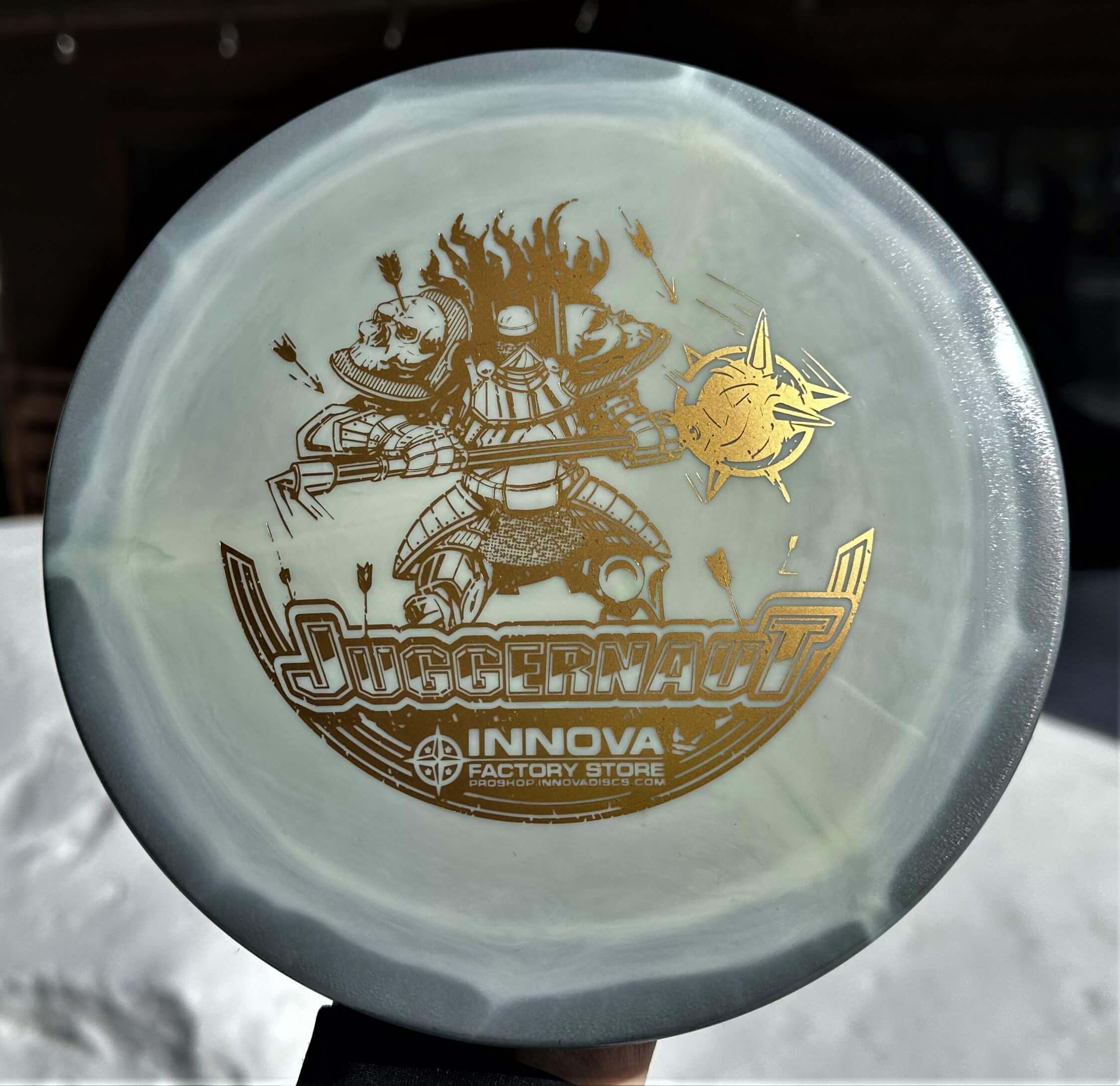 The Juggernaut is an extremely overstable, 12-speed driver that can be thrown at full power without worrying about the disc flipping over, even in massive headwinds. For players looking for the speed of the Destroyer with the fade of the Firebird, try the Juggernaut.