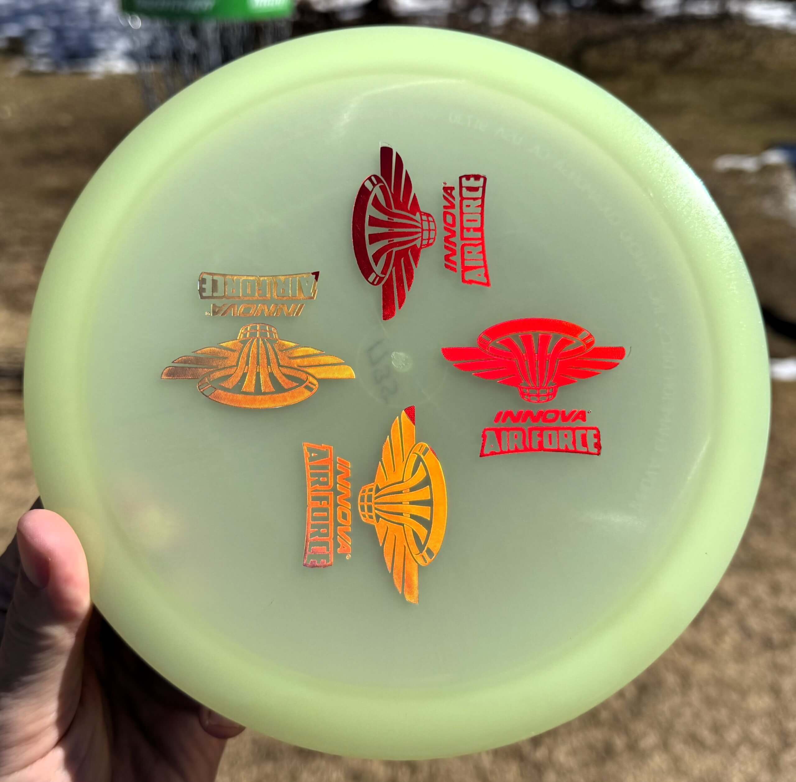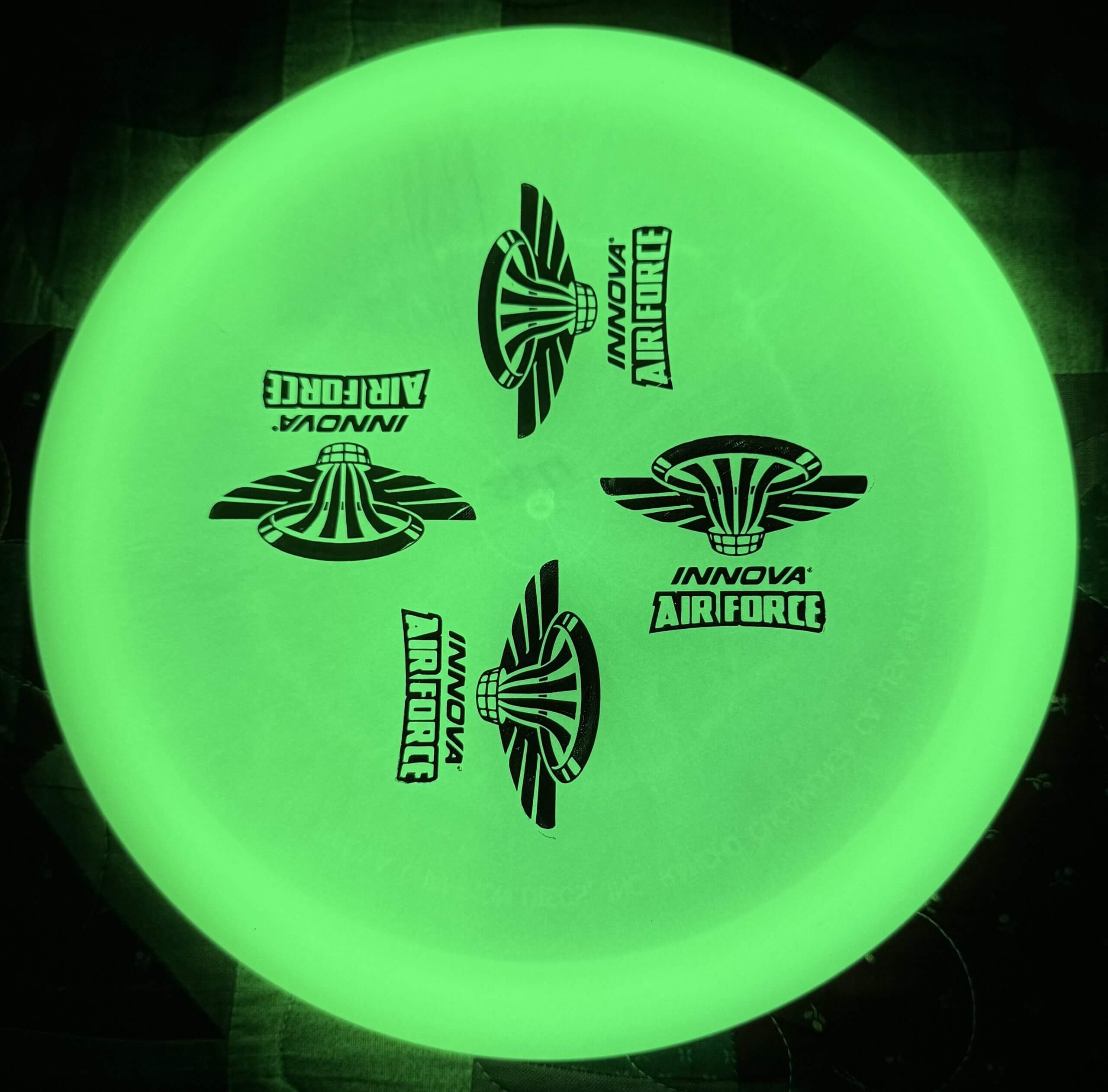 Proto Glow Champion plastic! Innova’s new material glows brighter and lasts longer than previous materials while keeping the grip that Innova glow is known for.