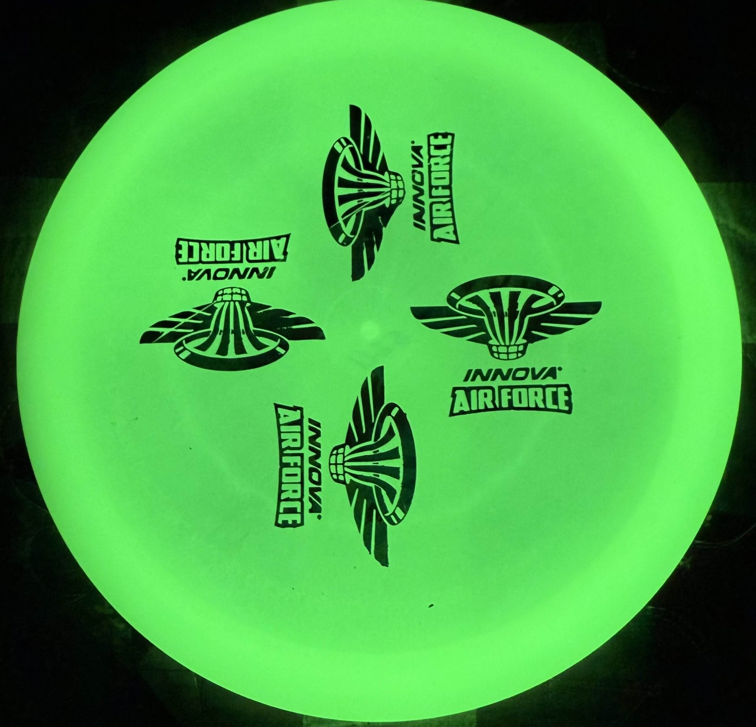 Proto Glow Champion plastic! Innova’s new material glows brighter and lasts longer than previous materials while keeping the grip that Innova glow is known for.