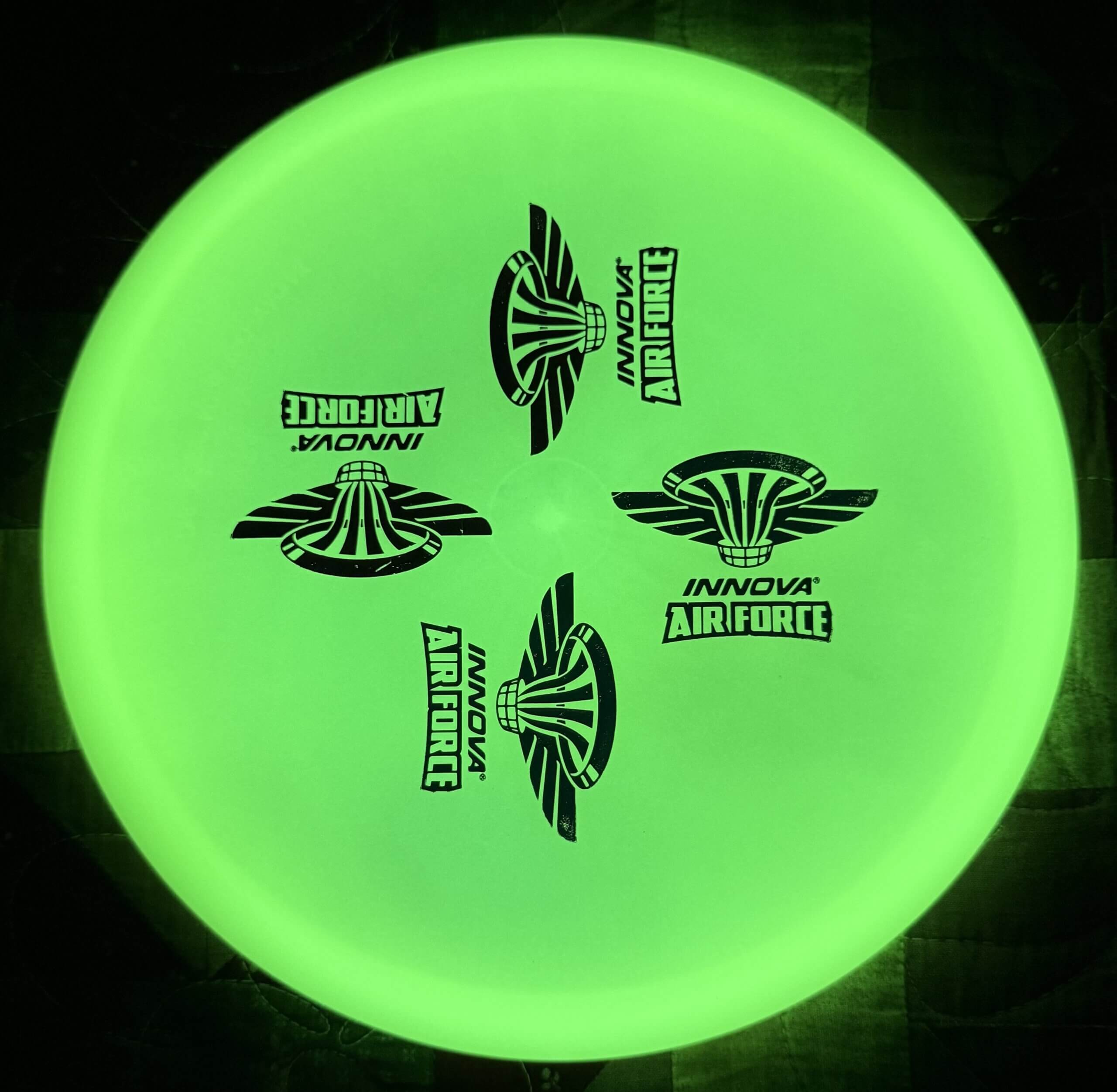 Proto Glow Champion plastic! Innova’s new material glows brighter and lasts longer than previous materials while keeping the grip that Innova glow is known for.
