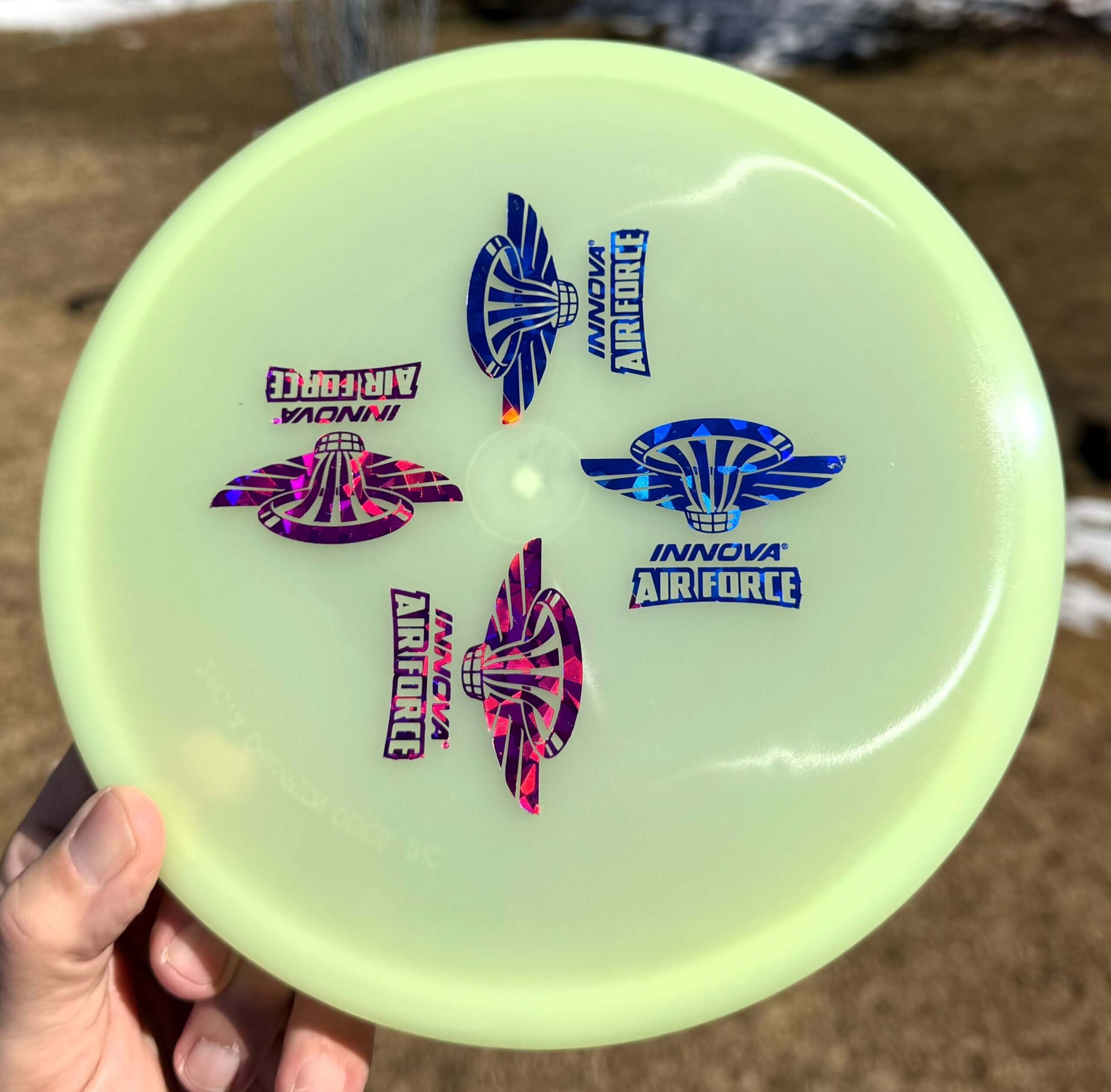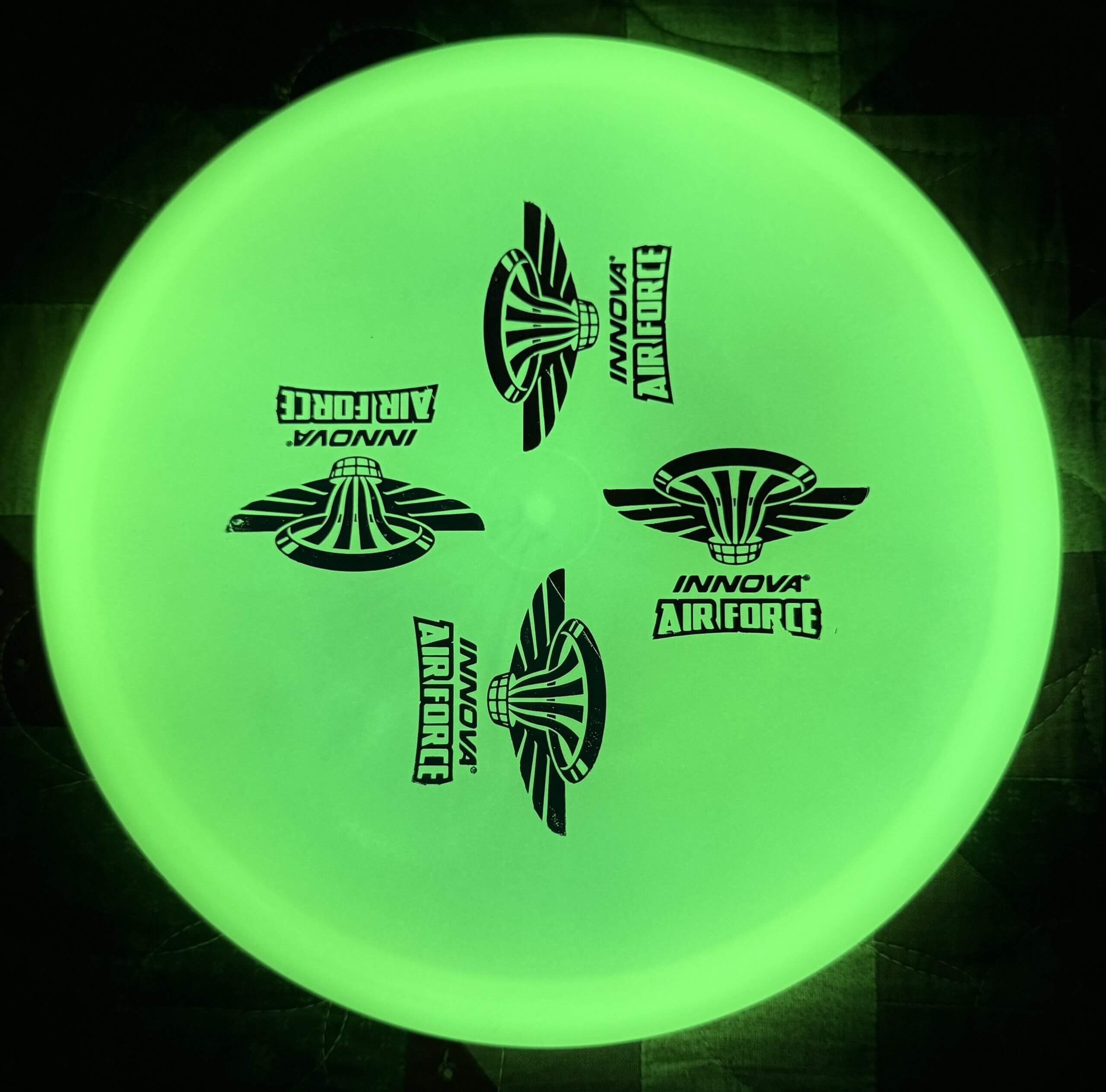 Proto Glow Champion plastic! Innova’s new material glows brighter and lasts longer than previous materials while keeping the grip that Innova glow is known for.
