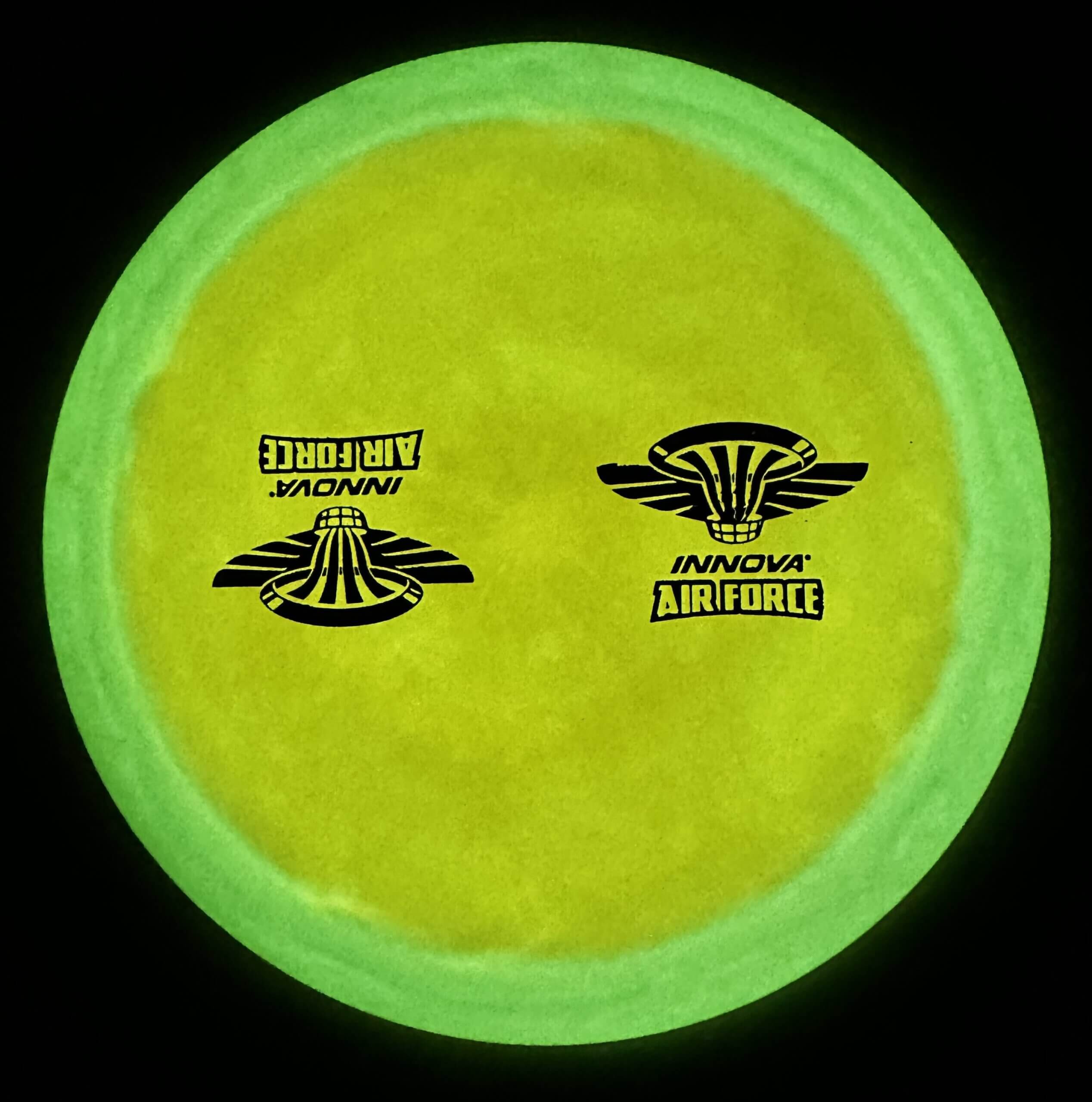 PROTO GLOW HALO DESTROYER with double mini Innova Air Force stamp. Proceeds from the sale of these Air Force stamped discs will be added to the purse for the 31st Northwoods Open at Sandy Point Disc Golf Ranch – Driven by Innova Discs.