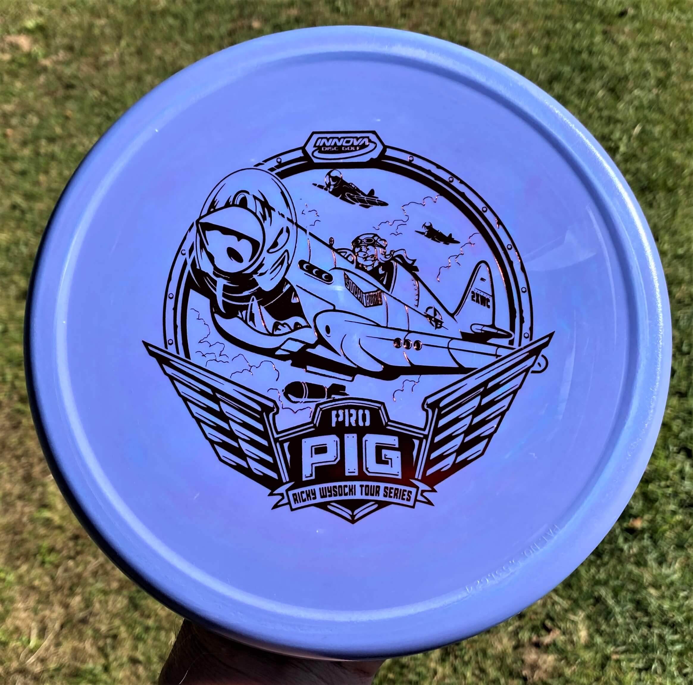 The Pig is an over-stable Putt & Approach disc. It is great for hyzer putting, sidearm approaches and backhand spikes. The Pig holds the line well, even in extreme wind conditions. The Pig features a Thumtrac® Rim for sure grips on sidearm throws and putts. Ricky relies on the Pig for his sidearm approach shots, knowing he can rely on the overstability to drop it next to the target. These Pigs are a stiffer blend of the Pro plastic, providing great grip and firm feel. A substantial portion of each sale will benefit Ricky Wysocki and his touring efforts.