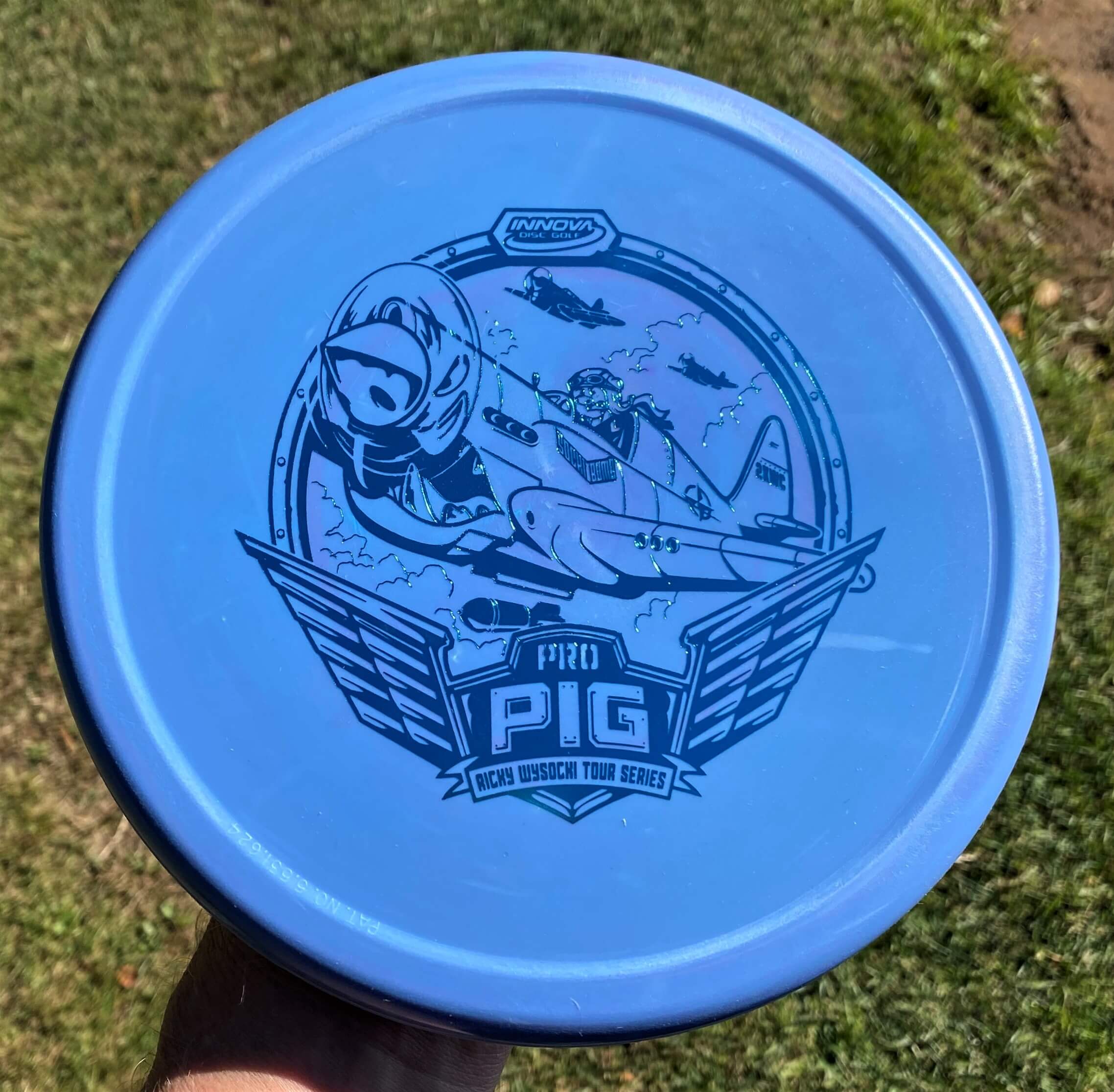 From Innova: “Ricky & the Pig go together like peanut butter & jelly. Ricky masterfully crafts flick approaches with the over-stable flight the Pig offers. The perfect dome & rim width combination creates a comfortable grip for flicks of all power levels. Short finesse or longer full powered shots, you’ll have the right tool for the job. Learn to harness the power of the Pig & you too can dive bomb the green.”