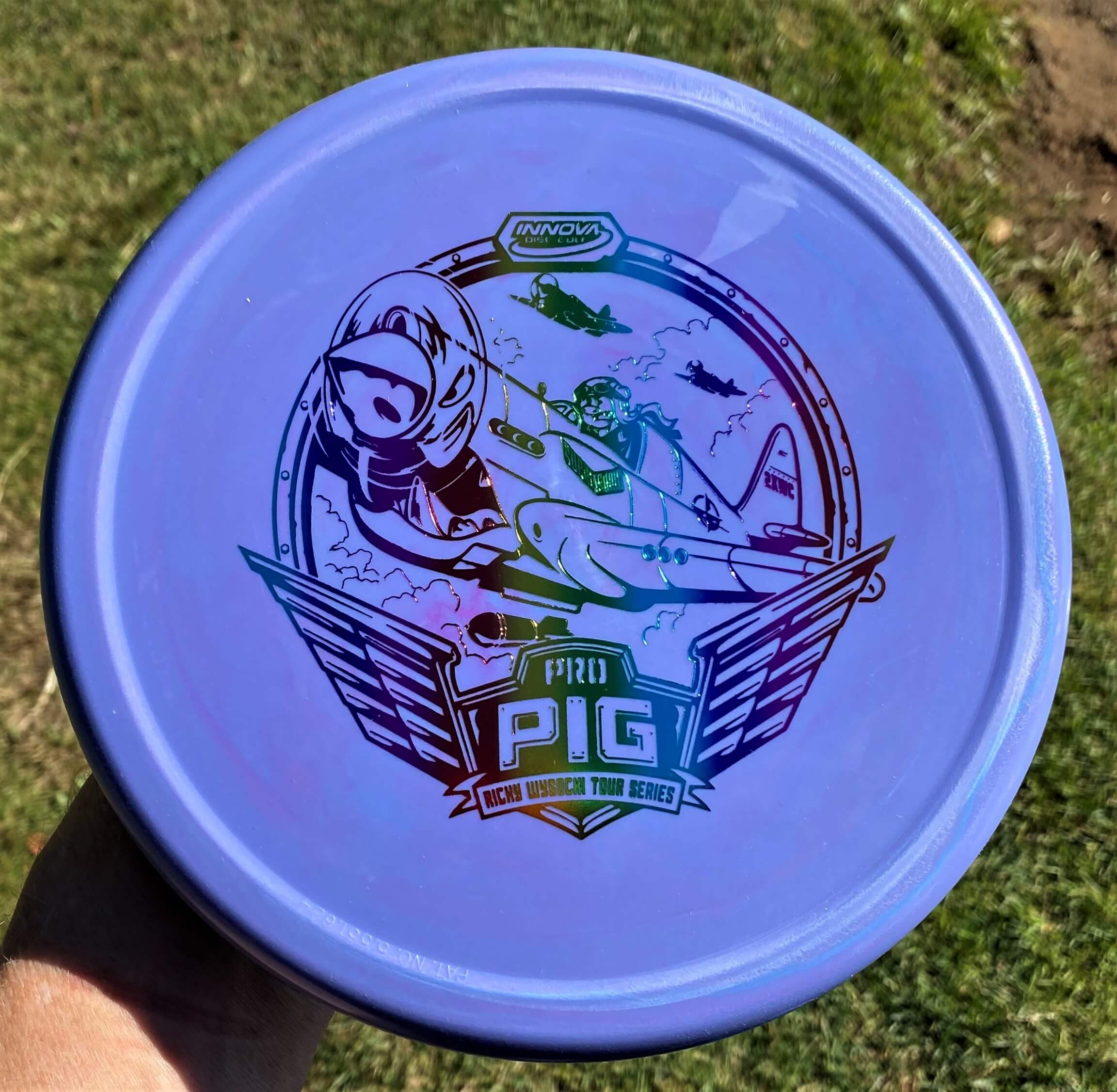 The Pig is an over-stable Putt & Approach disc. It is great for hyzer putting, sidearm approaches and backhand spikes. The Pig holds the line well, even in extreme wind conditions. The Pig features a Thumtrac® Rim for sure grips on sidearm throws and putts. Ricky relies on the Pig for his sidearm approach shots, knowing he can rely on the overstability to drop it next to the target. These Pigs are a stiffer blend of the Pro plastic, providing great grip and firm feel. A substantial portion of each sale will benefit Ricky Wysocki and his touring efforts.