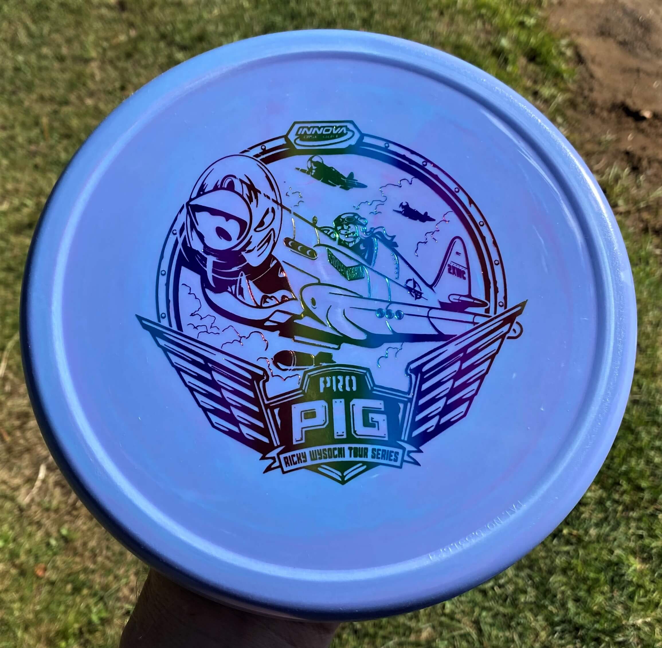 The Pig is an over-stable Putt & Approach disc. It is great for hyzer putting, sidearm approaches and backhand spikes. The Pig holds the line well, even in extreme wind conditions. The Pig features a Thumtrac® Rim for sure grips on sidearm throws and putts. Ricky relies on the Pig for his sidearm approach shots, knowing he can rely on the overstability to drop it next to the target. These Pigs are a stiffer blend of the Pro plastic, providing great grip and firm feel. A substantial portion of each sale will benefit Ricky Wysocki and his touring efforts.