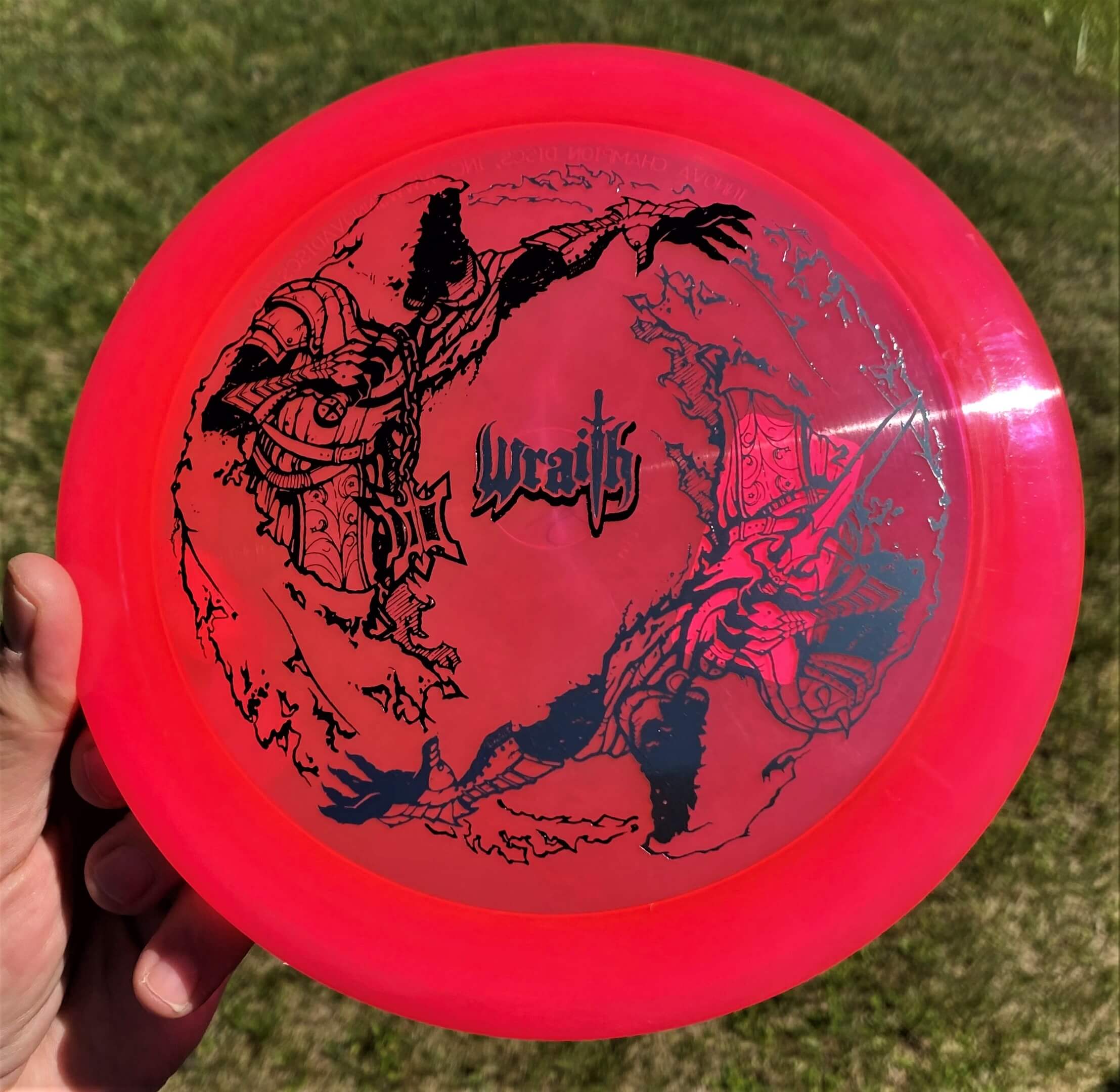 This is the popular Marm O. Set’s Zen design, a freehand, tattoo style, on a champion wraith. It has a significant dome with a sturdy champion feel–grippy but not gummy.